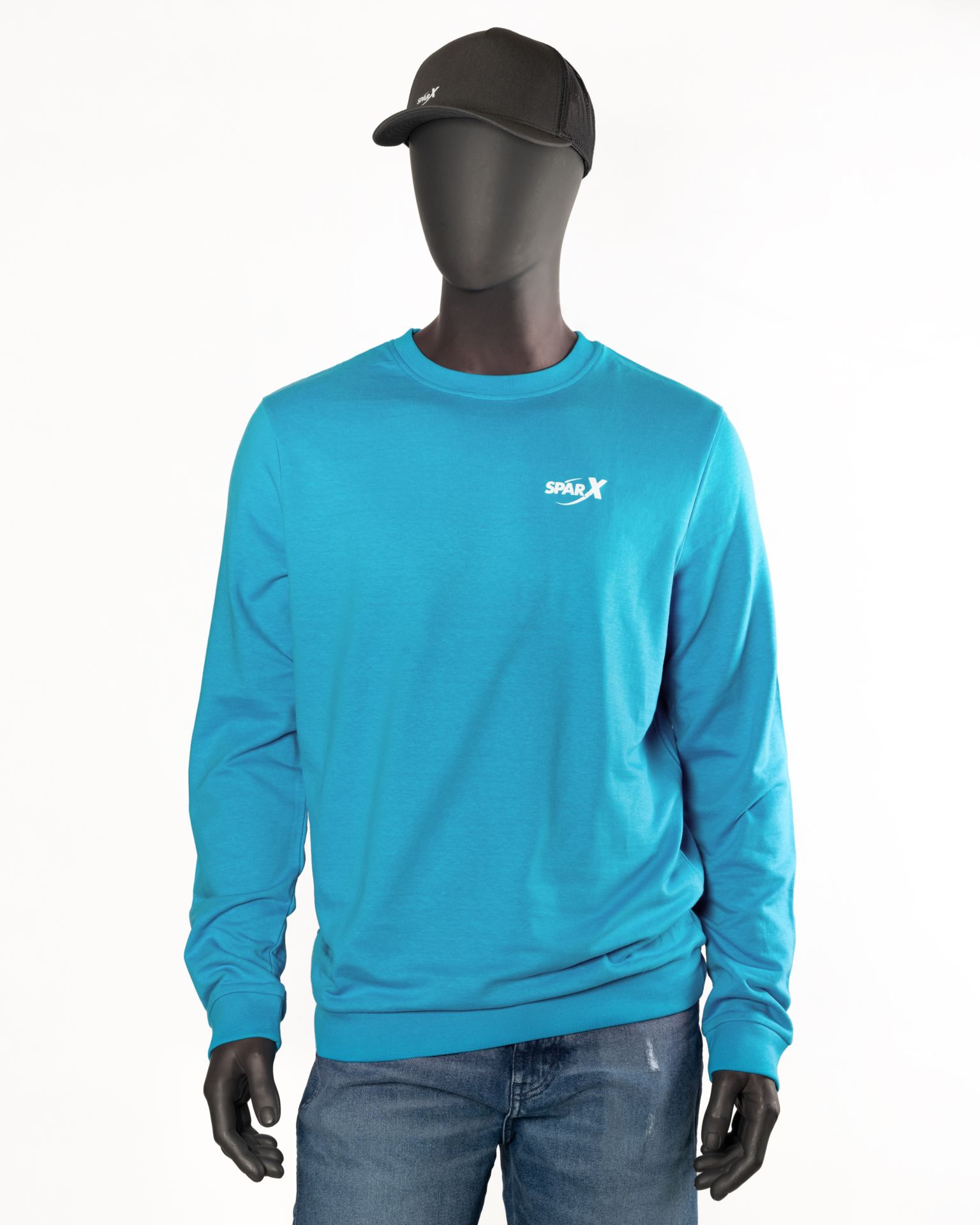 Bluza typu crewneck z kolekcji POLISH SPARX w kolorze niebieskim / hawaiian blue z białym logo na piersi.