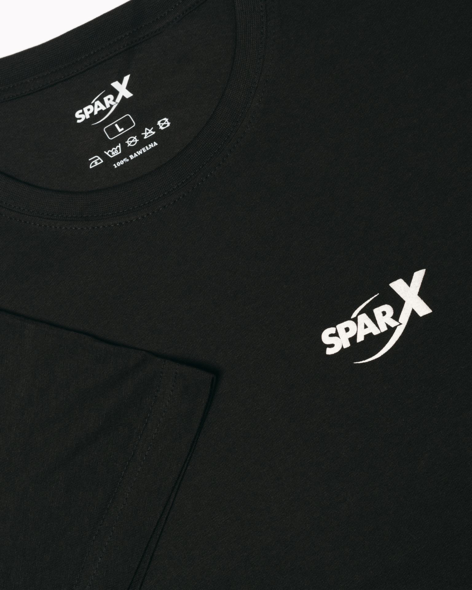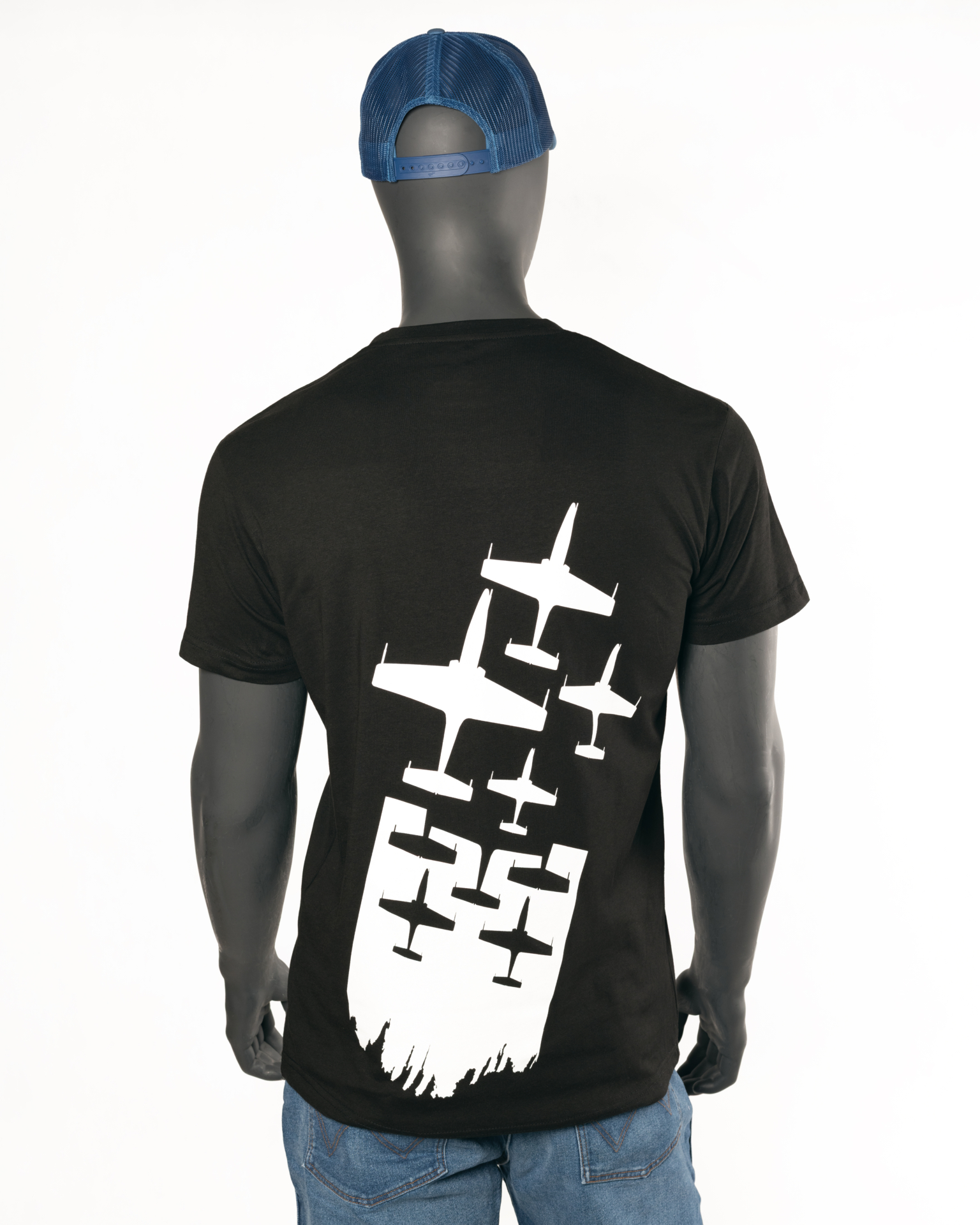 Koszulka z kolekcji POLISH SPARX w kolorze czarnym z białym logo na piersi oraz białą grafiką samolotów TS11 Iskra na plecach.
